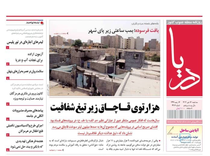 صفحه نخست روزنامه های هرمزگان روز سهشنبه ۱۶ دیماه